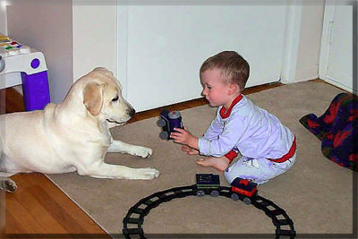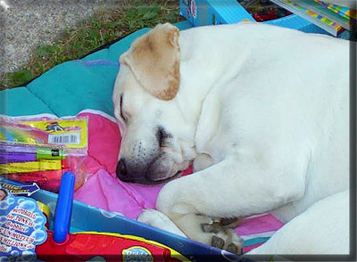 What could be more special than to keep a little girl from our 25th Labrador Litter and call her our Anniversary Edition? Thanks to the kindness of Vicky Creamer at Belquest, (who was supposed to get pick puppy from this litter, but kindly agreed to wait until a future litter,) I was able to keep this sweet little girl for myself. Annie enjoys living in a wonderful foster home, with Jenna, Mike and Annie's best little buddy, Cooper. Jenna's parents, Donna and Ed have been very good friends with my sister for many years, so when Jenna and Mike came along, I had every confidence that Annie could make a lovely pet for them, while still showing and being part of the breeding program here at Staghorn. Jenna and Mike couldn't be happier with her. As the pictures below demonstrate, Annie is a very sociable, people oriented young female. (Thanks for the pictures, Jenna and Mike.) It seems to me that wherever Cooper goes, Annie is not far behind. We're very proud of this sweet girl and we're also thrilled that Jenna and Mike can enjoy her too. She's all we could have asked for. And then some!!!